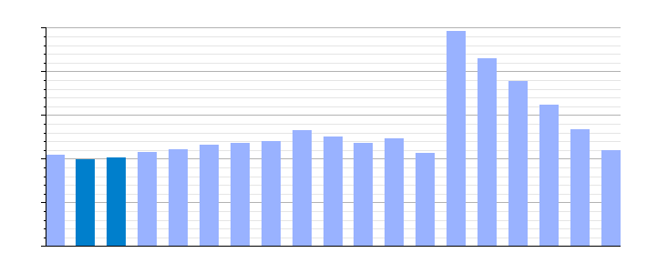 Población de derecho según los censos de población del INE     Población de hecho según los censos de población del INEEn 1963 crece el término del municipio porque se fusionan los municipios Puente Nuevo y Villaodrid[18]