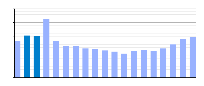 Gráfica de evolución demográfica de Puente la Reina[3] entre 1842 y 2021