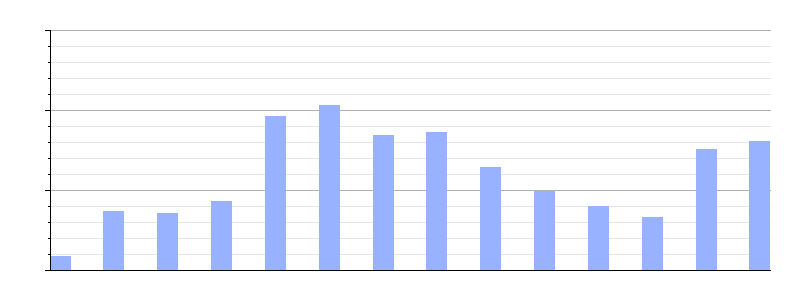 Gráfica de evolución demográfica de Purullena[6] entre 1842 y 2021