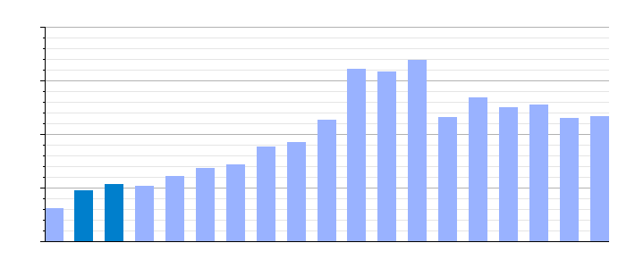 Gráfica de evolución de la deuda viva del Ayuntamiento entre 2008 y 2021