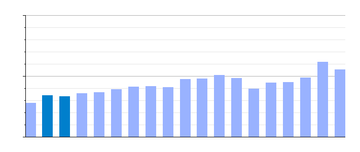 Gráfica de evolución de la deuda viva del Ayuntamiento entre 2008 y 2014