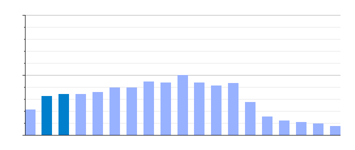 Gráfica de evolución demográfica de Reina[5] entre 1842 y 2021