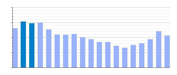 Gráfica de evolución demográfica de Riaza[6] entre 1842 y 2021