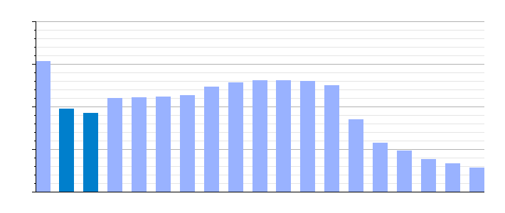 Gráfica de evolución demográfica de Salorino[8] entre 1842 y 2021