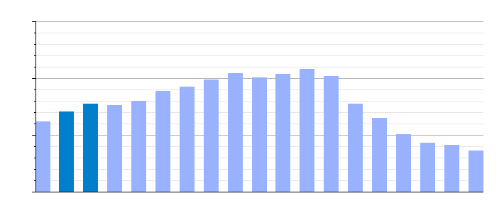 Gráfica de evolución demográfica de San Esteban del Valle[14] entre 1842 y 2021
