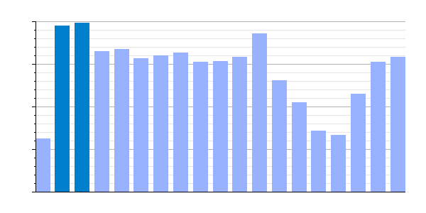 Gráfica de evolución demográfica de San Mamés de Burgos[2] entre 1842 y 2021 |