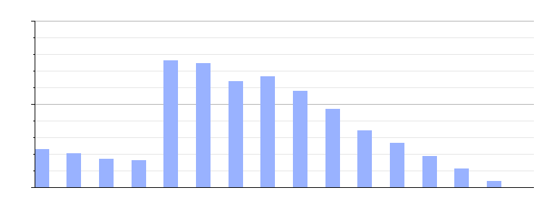 | Gráfica de evolución demográfica de Santiago-Pontones[11] entre 1981 y 2021 |