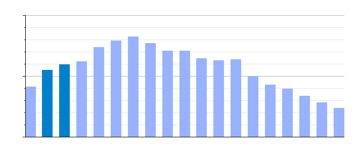 Gráfica de evolución demográfica de Sanzoles[6] entre 1842 y 2021