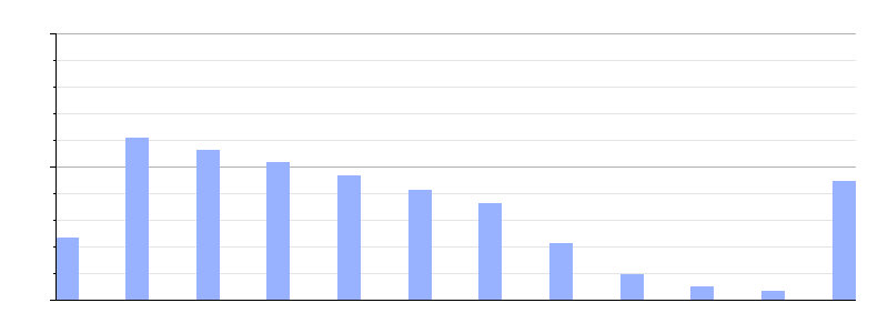 Gráfica de evolución demográfica de Serón[15] entre 1842 y 2021