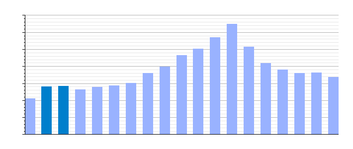 Gráfica de evolución demográfica de Talarrubias[4] entre 1842 y 2021