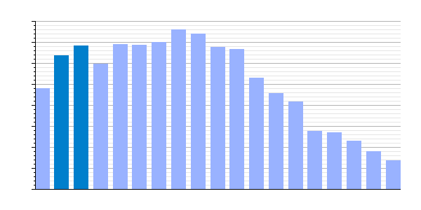 Gráfica de evolución demográfica de Tapioles[14] entre 1842 y 2021