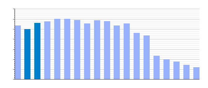 Gráfica de evolución demográfica de Torrecilla del Rebollar[4] entre 1842 y 2021