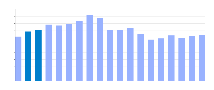 Gráfica de evolución demográfica de Tous[2] entre 1842 y 2021