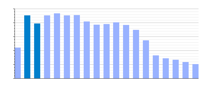 Gráfica de evolución demográfica de Tramacastilla[6] entre 1842 y 2021
