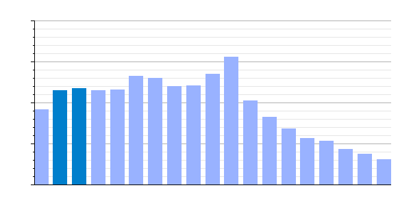 Gráfica de evolución demográfica de Triacastela[5] entre 1842 y 2021
