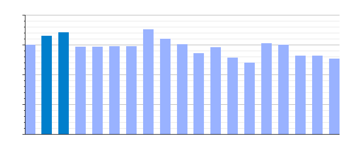 | Gráfica de evolución de la deuda viva del Ayuntamiento entre 2008 y 2019 |