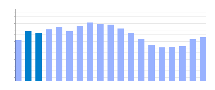 Gráfica de evolución demográfica de Valderrobres[6] entre 1842 y 2021