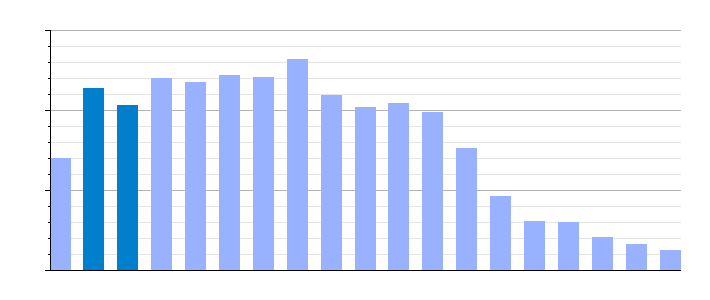 | Gráfica de evolución demográfica de Valle de Ancares[13] entre 1842 y 2021 |