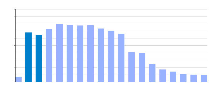 Gráfica de evolución demográfica de Valle de Valdelaguna[2] entre 1842 y 2021