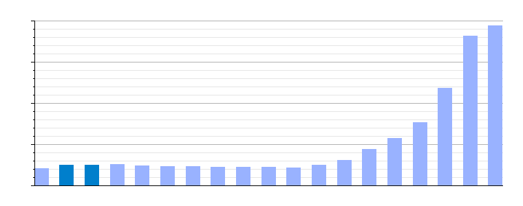 | Gráfica de evolución demográfica de El Vendrell[5] entre 1842 y 2021 |