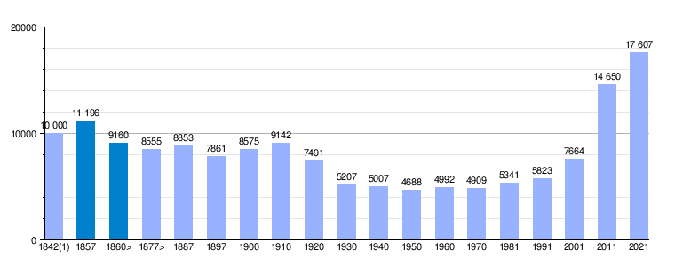 Gráfica de evolución demográfica de Vera[24] entre 1842(1) y 2021