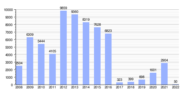 Gráfica de evolución de la deuda viva del Ayuntamiento de Vera entre 2008 y 2022