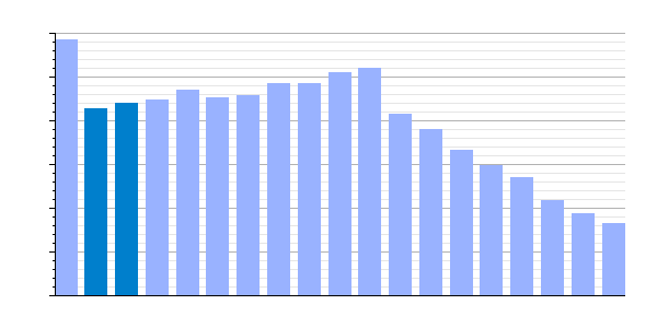 Gráfica de evolución demográfica de O Vicedo[16] entre 1842 y 2021
