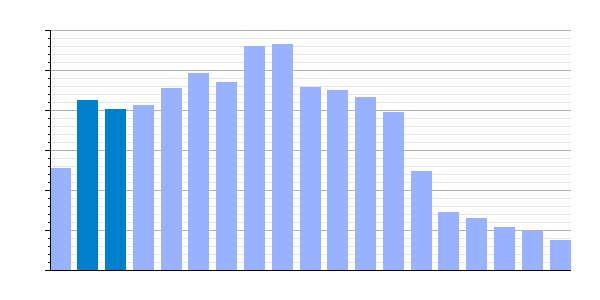 | Gráfica de evolución demográfica de Villárdiga[11] entre 1842 y 2021 |