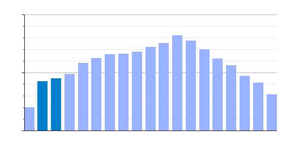 | Gráfica de evolución demográfica de Villabuena del Puente[13] entre 1842 y 2021 |