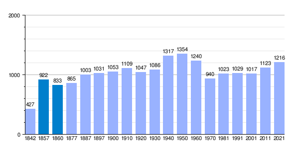 | Gráfica de evolución demográfica de Villadangos del Páramo[9] entre 1842 y 2021 |