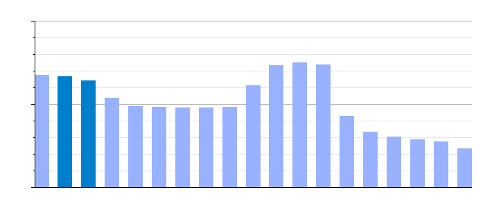 Gráfica de evolución demográfica de Villaescusa de Haro[2] entre 1842 y 2021
