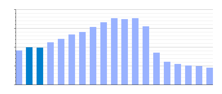 | Gráfica de evolución demográfica de Villagarcía de la Torre[2] entre 1842 y 2021 |