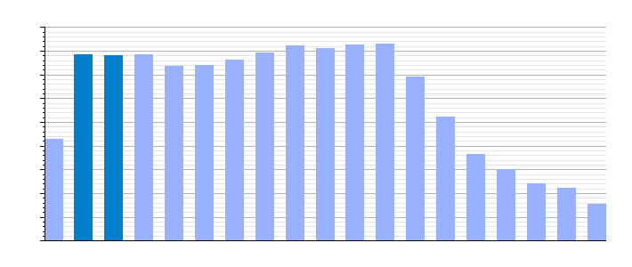 Gráfica de evolución demográfica de Villamayor de los Montes[4] entre 1842 y 2021