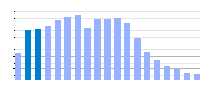 | Gráfica de evolución demográfica de Villanueva de Jiloca[4] entre 1842 y 2021 |