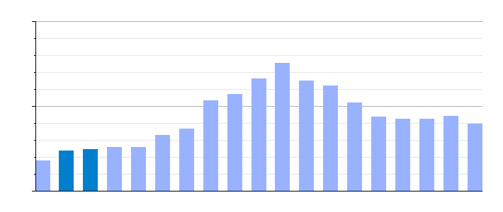 Gráfica de evolución demográfica de Villanueva del Arzobispo[1] entre 1842 y 2021
