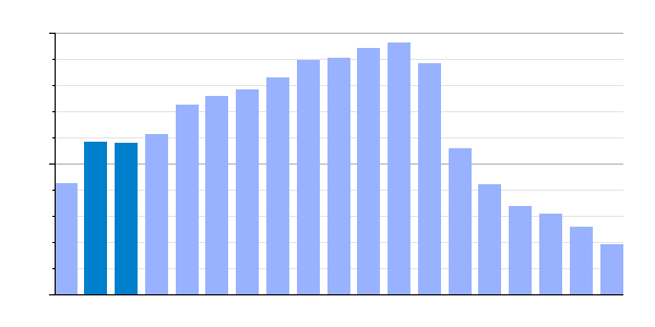 Gráfica de evolución demográfica de Villarín de Campos[7] entre 1842 y 2021