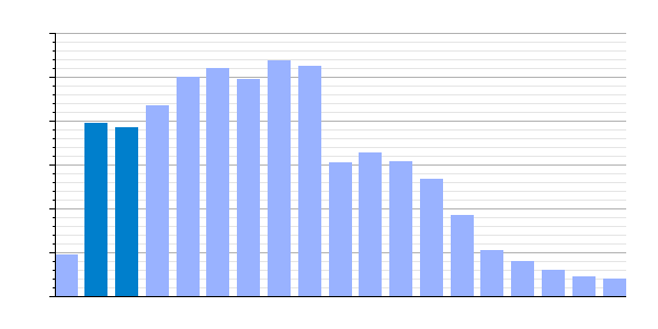 | Gráfica de evolución demográfica de Villatuelda[18] entre 1842 y 2021 |