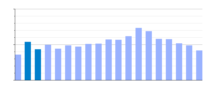 | Gráfica de evolución demográfica de Vinuesa[11] entre 1842 y 2021 |